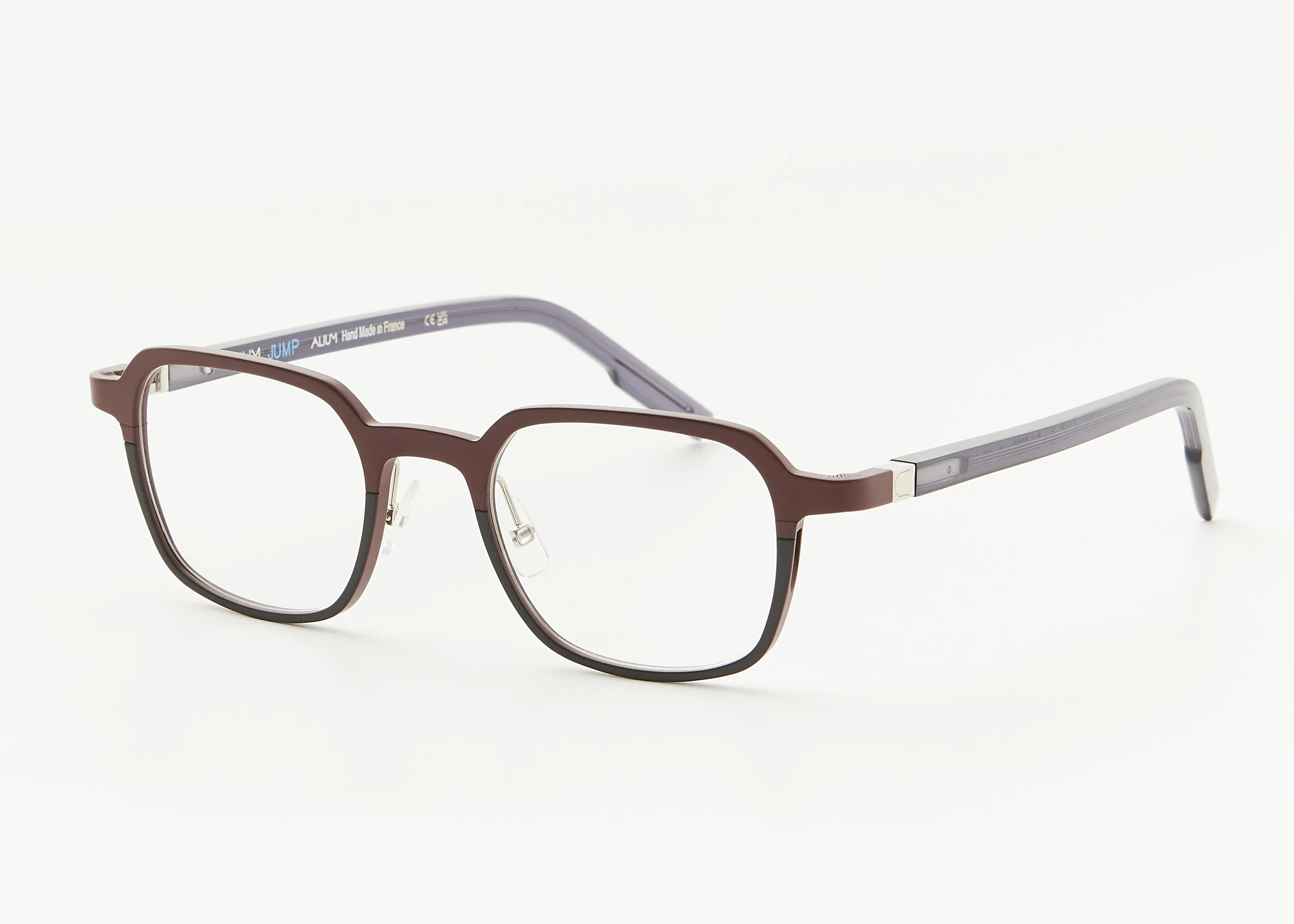 Discover JUMP: French-made, bicolour aluminium glasses with a unique three-dimensional Gear hinge. Available in panto, square, and rectangle shapes, these glasses bring dynamic colour and sporty elegance to any outfit. Perfect for overcoming obstacles in style!
