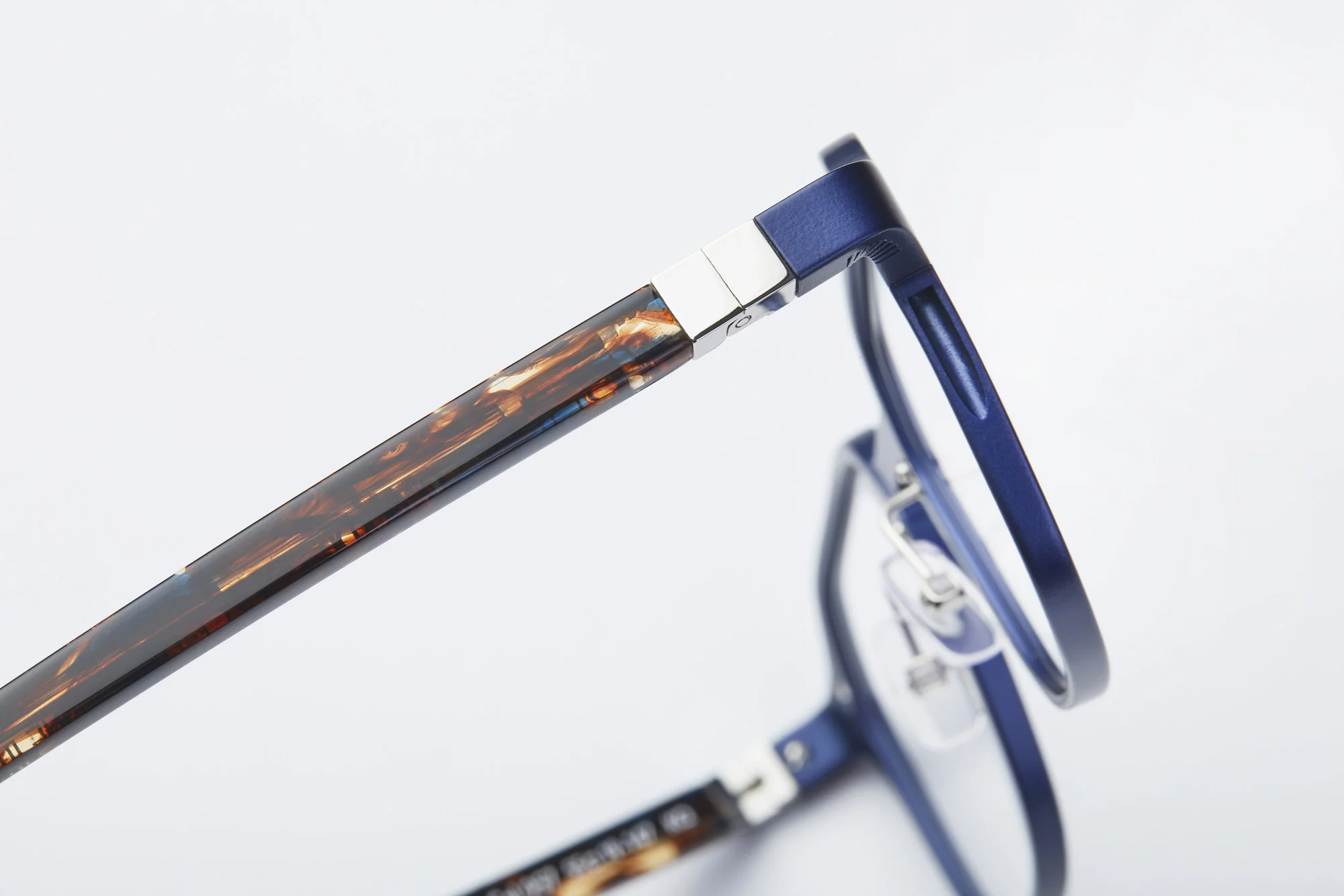 This design is made in France with a classic hinge – the ALIUM brand signature. The bridge has a milled recess to better highlight the colour. Finally, we achieved the endpiece milling with an ALIUM-patented technique.