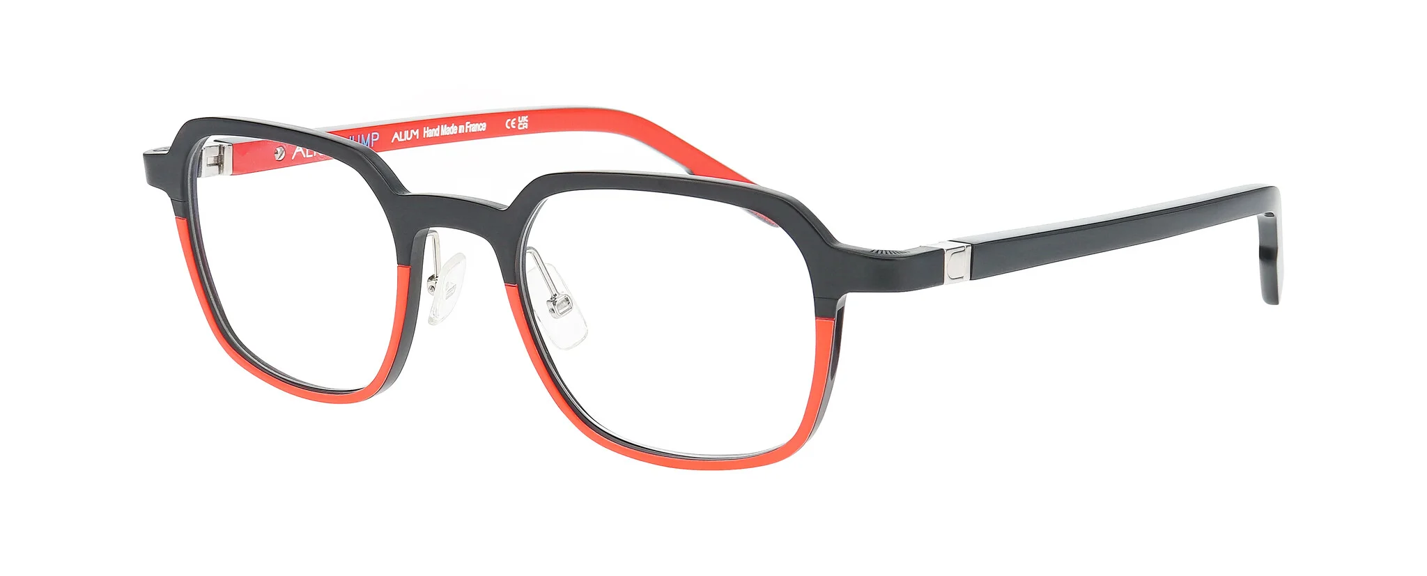 Discover JUMP: French-made, bicolour aluminium glasses with a unique three-dimensional Gear hinge. Available in panto, square, and rectangle shapes, these glasses bring dynamic colour and sporty elegance to any outfit. Perfect for overcoming obstacles in style!