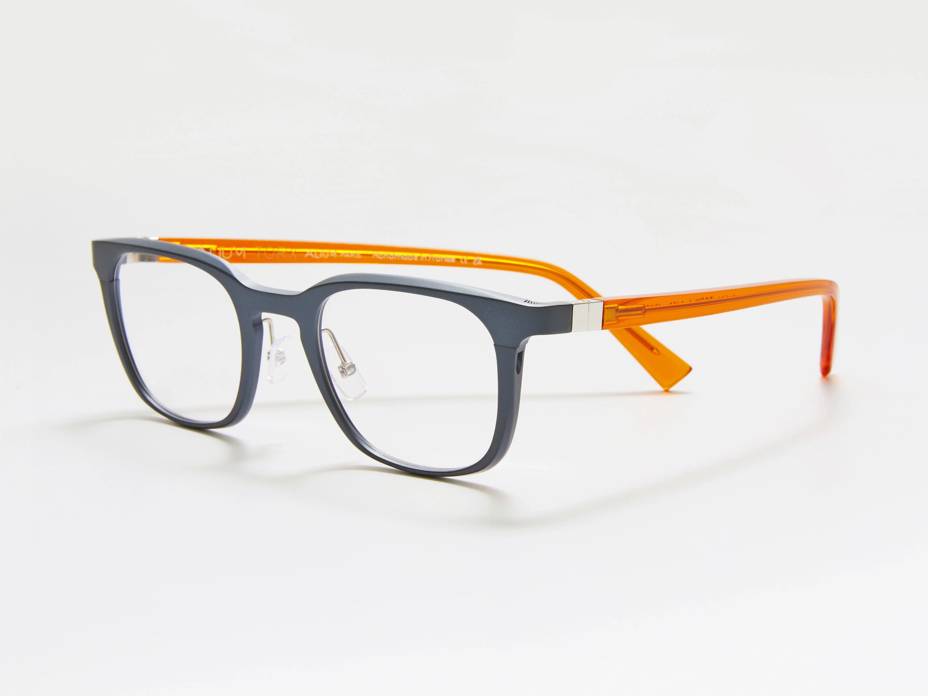 This new concept features elegant colours that illuminate the gaze like an emerald blue, an urban burgundy, or a forest green. New warm harmonies adorn it, like this velvet navy blue with a mustard touch on the temple; or this striking steel grey coupled with its’ crystal orange temple.