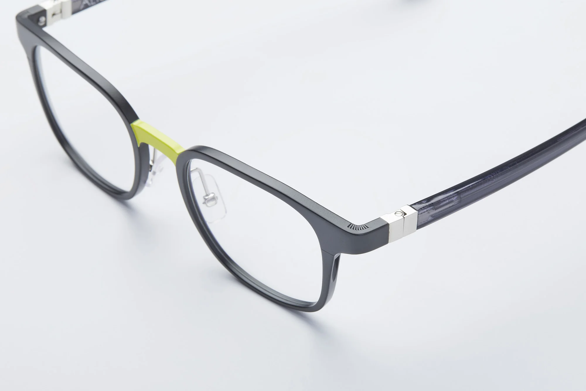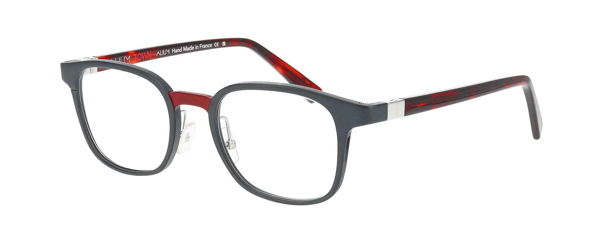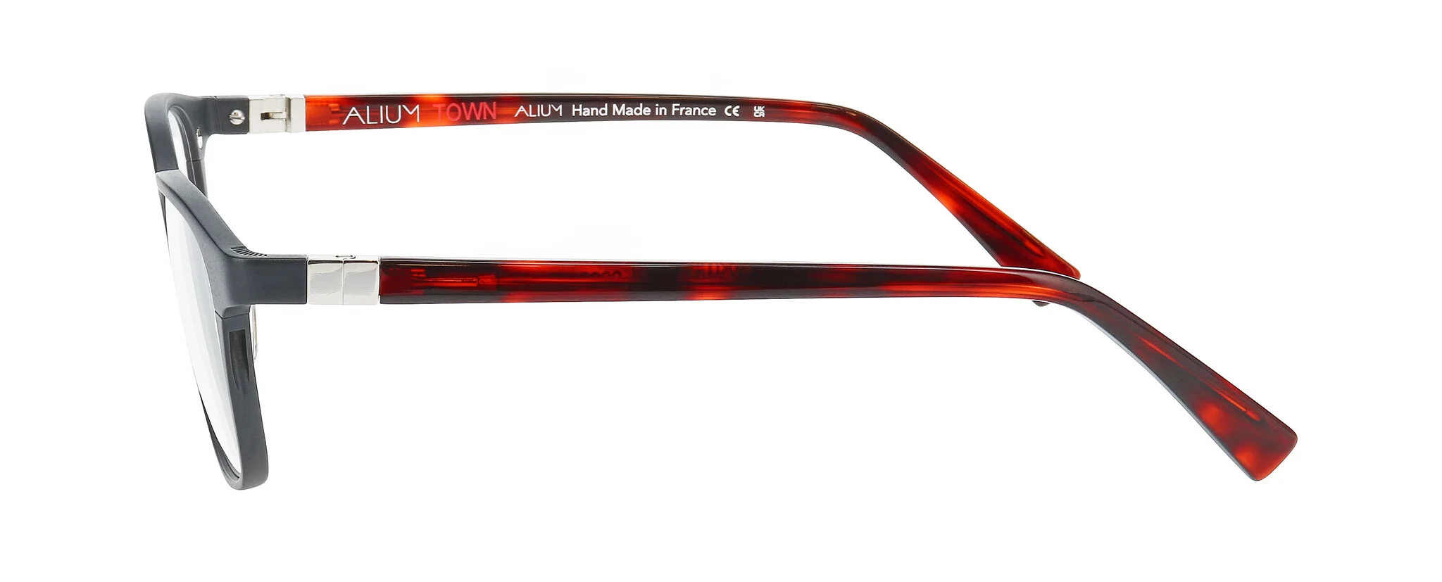 This design is made in France with a classic hinge – the ALIUM brand signature. The bridge has a milled recess to better highlight the colour. Finally, we achieved the endpiece milling with an ALIUM-patented technique.